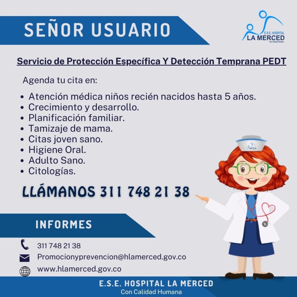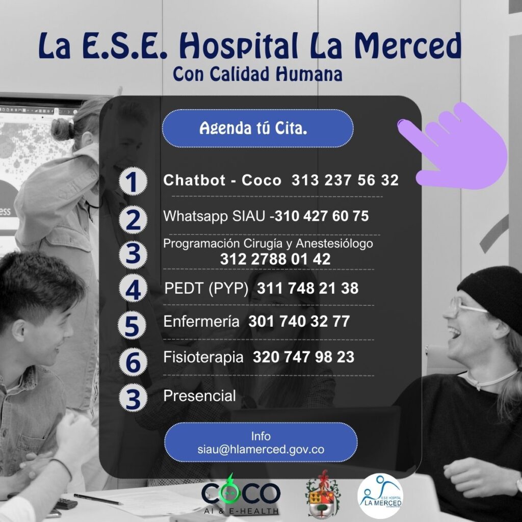 La información publicada en el sitio web, es propiedad intelectual de la E.S.E Hospital La Merced a menos que un contenido específico indique lo contrario en cuyos casos se referencien otros portales web de interés y/o organismos de control y regulatorios de la ESE. En caso de contenidos externos diferentes a los mencionados la ESE realizará mención de fuente de información y atribuirá sus derechos.